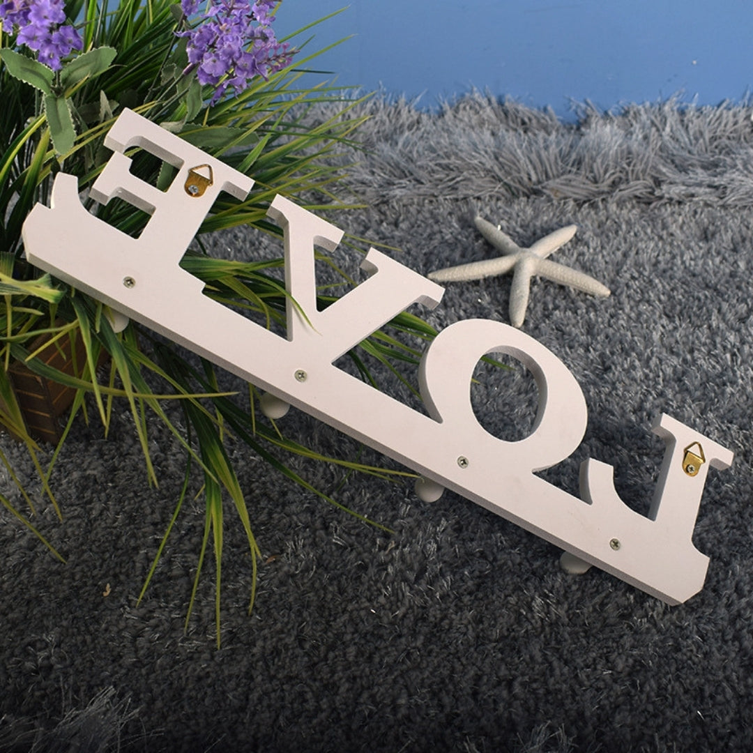 This is a Decorative Wall-Mounted Key Holder (Key Rack or Coat Hook) featuring the word "LOVE." It is a functional and aesthetic piece of home decor designed to organize keys, small coats, leashes, or other lightweight items, making it ideal for entryways, kitchens, or bedrooms. The simple design adds a touch of warmth and organization to any space.
