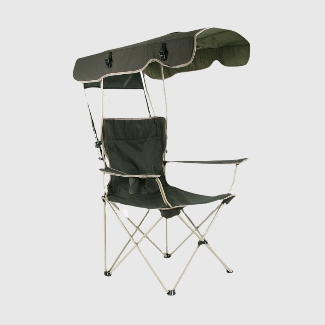 The Modern Foldable Metal Camping Chair with Canopy is a convenient and Foldable piece of Outdoor Furniture designed with a Modern design style. Its sturdy structure is made with Metal Frame Material and features durable Oxford Fabric. The chair is Easy to Carry and includes a canopy for sun protection.